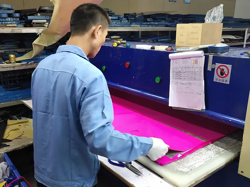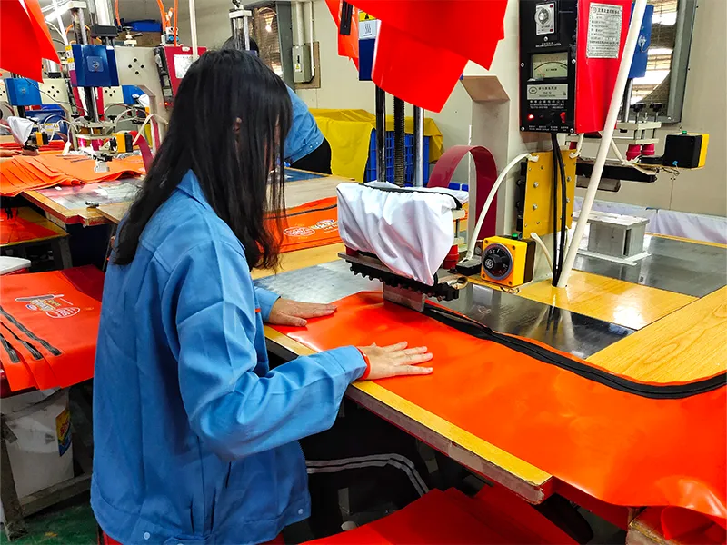 Våra fabriker är utrustade med branschledande automatiserad produktionsutrustning, inklusive intelligent skärning, precisionssvetsning och automatiserade monteringslinjer. Denna avancerade installation har ökat vår totala produktionseffektivitet med över 30 %. Det tillåter oss att konsekvent bemästra krävande tekniker som högfrekvent värmeförsegling.