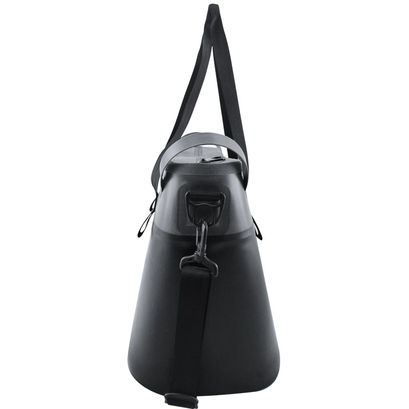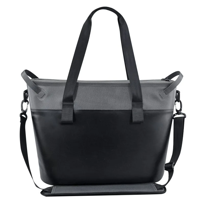 Den har en läckagesäker design, med värmeförseglade sömmar för att säkerställa att det inte droppar. Storleken är 18 x 6,7 x 13,8 tum, med stor kapacitet men kan vikas ihop för förvaring. Den förstärkta diagonala lastbärande remmen gör att den säkert kan bära över 50 pund vikt, och remmarna kan även justeras i längd, vilket gör den lätt att bära eller axla tillbaka.